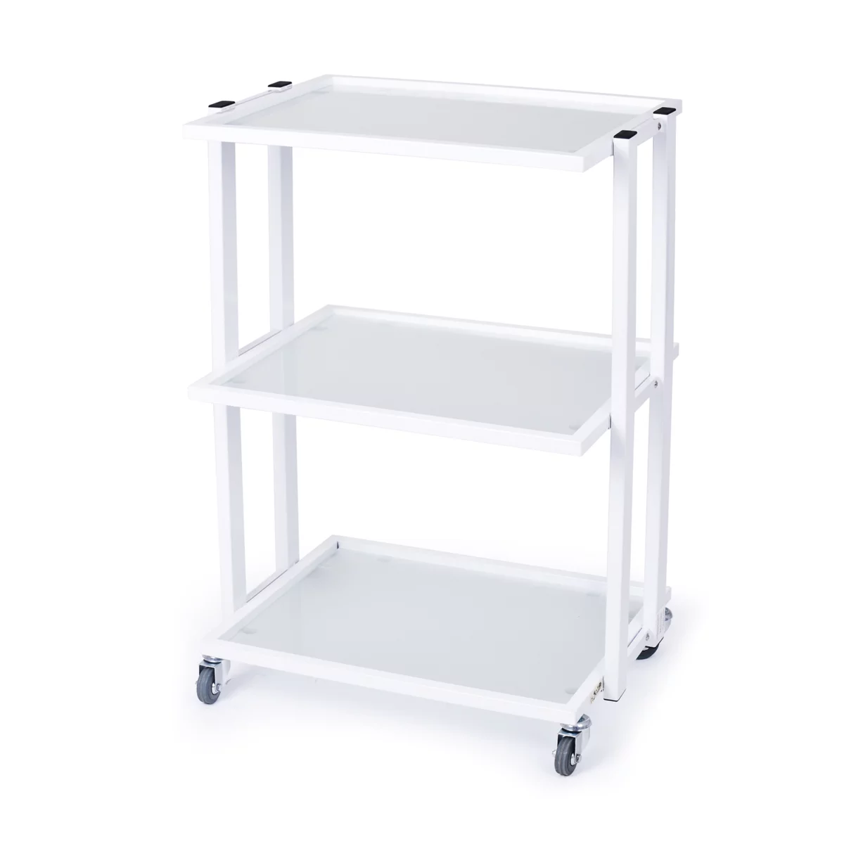 Kozmetička kolica sa policama, za aparate i pribor. Jaka i stabilna metalna konstrukcija sa tri staklene etaže, omogućava postavljanje većine kozmetičkih aparata.