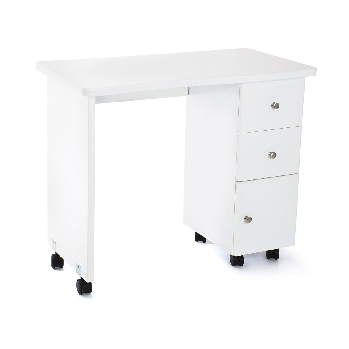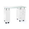 + dostava putem brze pošteCode 2 2 5 8 8 Sto za manikir BELI – Dimenzije: Dužina: 900 mm Širina: 475 mm Visina: 760 mm – Boja: BELA – Pokretan sto, sa točkićima – 2 fioke – ormarić